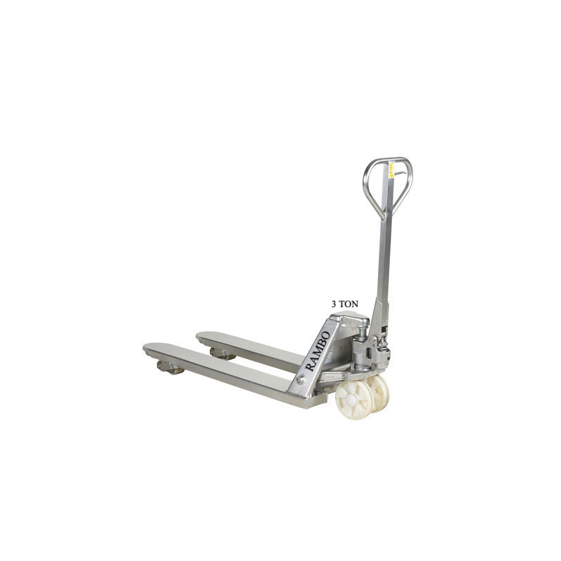 Transpalette manuel galvanisé d'une capacité de charge de 3000 kg.