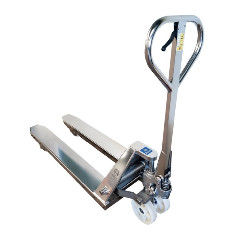 TRANSPALETTE MANUEL INOX 304 - ROUES NYLON - CHARGE MAX 3000 KG - 550 MM X 1250 MM