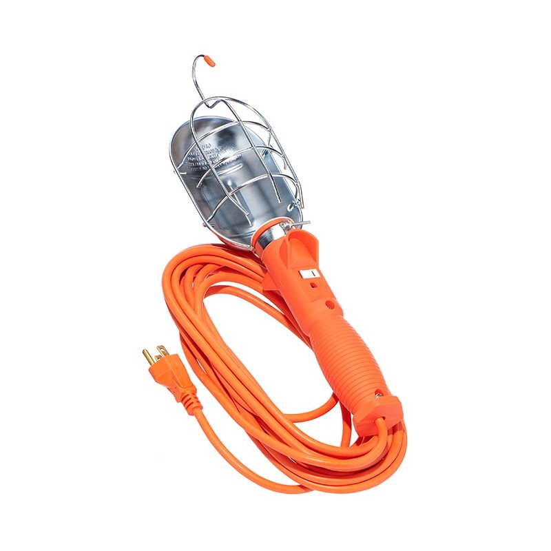 Cette baladeuse comprend un fil de 5 ou 10 mètres , un double système de crochet et une cage en métal. Ampoule non incluse.
